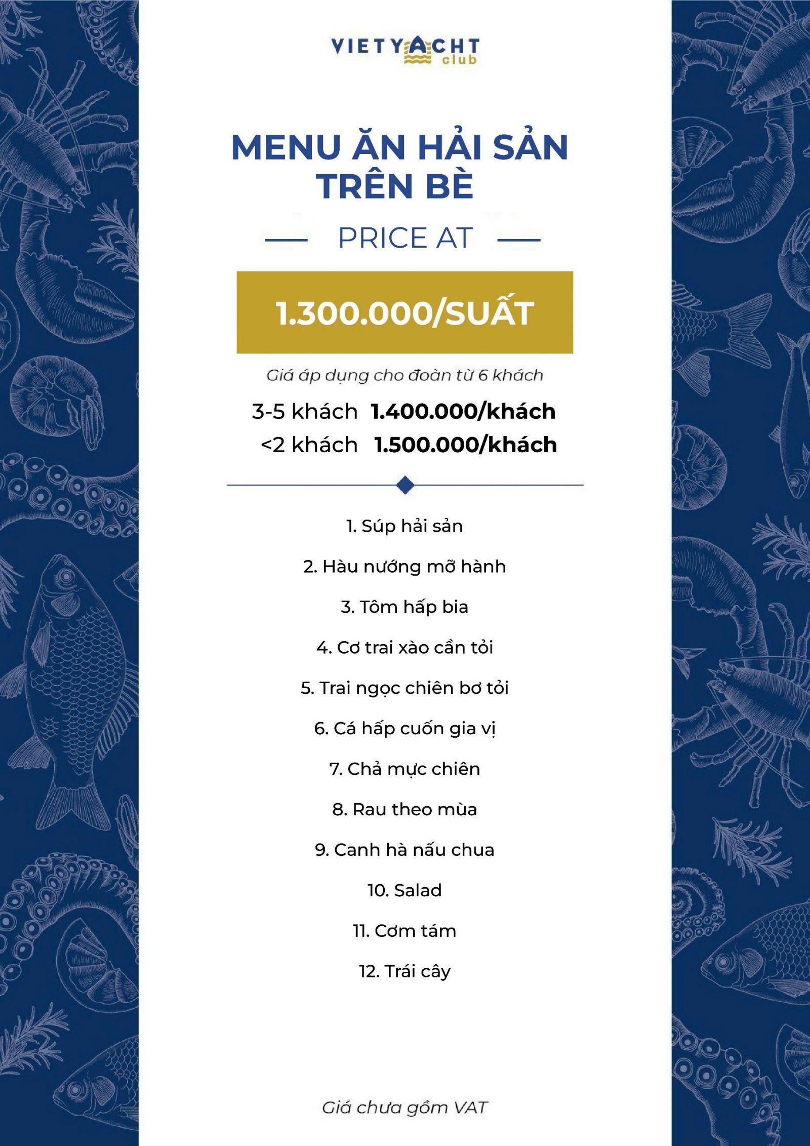 Menu đậm đà hương vị biển cả bao gồm những gì?